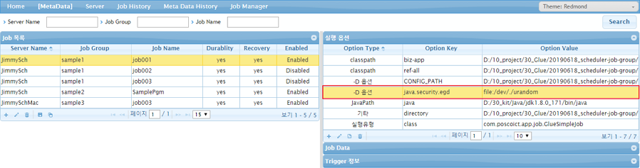 scheduler-server.log 에 다음과 같이 GlueQueryLoader와 GlueJdbcDao 간의 많은 시간이 소요되거나, Job History화면상에 Job실행 상태가 이상할 경우, Oracle 11g JDBC Driver를 사용하는지 확인해보시기 바랍니다.